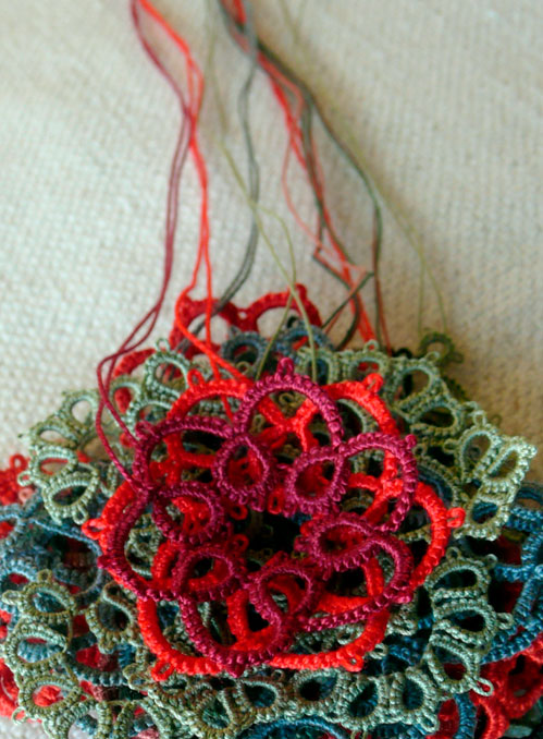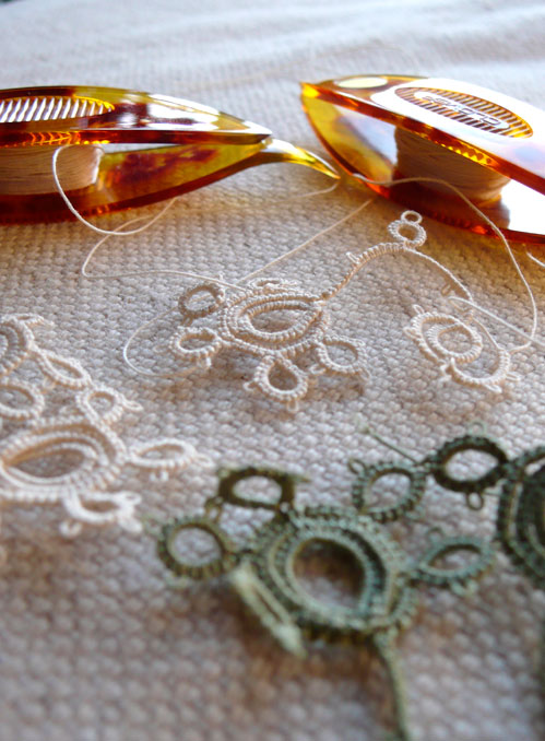While I was tatting the motif in the previous post, I decided I should really finish stuff off properly; block it and tidy up the ends. There’s two reasons really – 1) it would give me a proper sense of achievement when I’d finished and 2) I wouldn’t end up with a pile of tatting sitting on my desk with the threads all waiting to be dealt with: