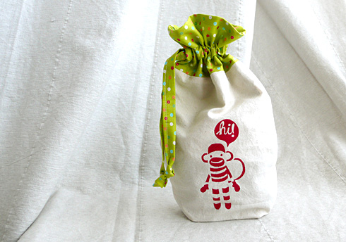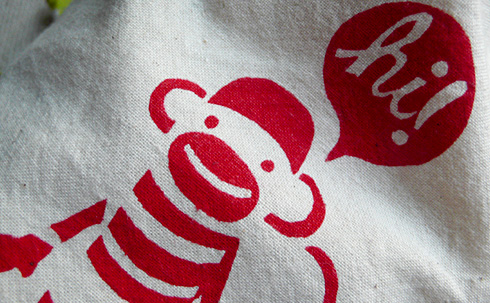 They gave as a little bag to screenprint, which you can see on the left. It’s really cute – child sized. I also have a tea towel with a monkey on each end.