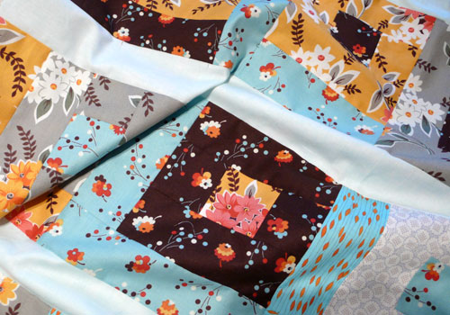 I had to improvise with the pattern a bit; originally I wanted it all to be colour and pattern with no plain solids in there, but I used up all the fabric and it was a bit small so I added the sashing in. The sashing is actually a pale turquoise left over from quilt two, which is quite handy.