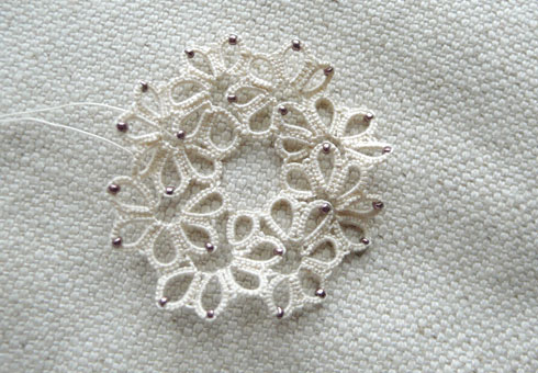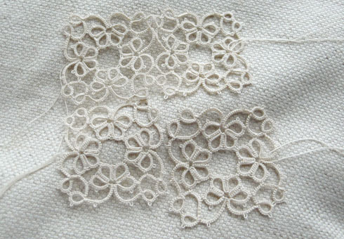 Hello! I’ve had a few days off, weekends away, and various house guests, which is why I’ve been a bit quiet recently. I have been tatting a tiny bit, although not as much as I’d like – mainly as I can’t always get a seat on the train, which is where I usually tat. Spare evenings are still taken up with The Knitted Scarf, which is coming along nicely. (Although not without a fair bit of unpicking, whilst trying to watch Alien in the dark. Unpicking knitting is quite frustrating, isn’t it? Not so with crochet.)