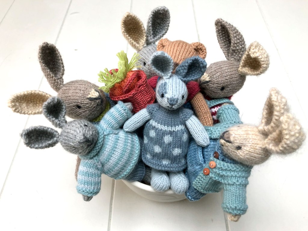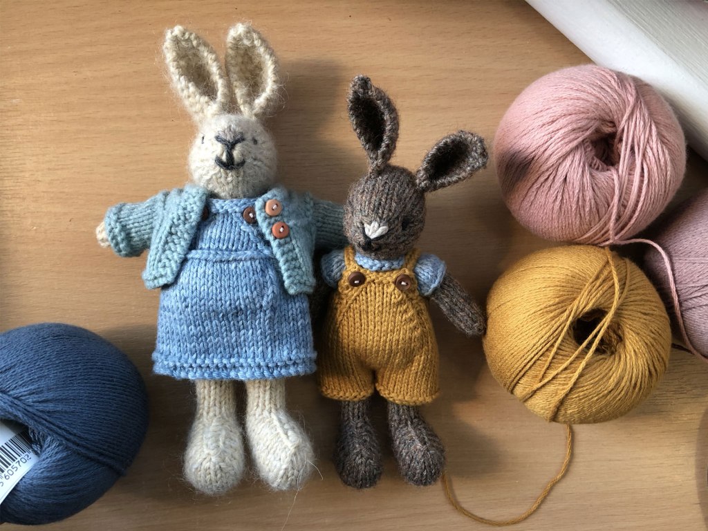 This week I’ve also knitted a dress and 2 cardigans for larger rabbits. Mainly because I decided I didn’t like the ones I’d made previously. These are for rabbits still waiting to be gifted, after, what… 2 years, I think. Pandemics eh?