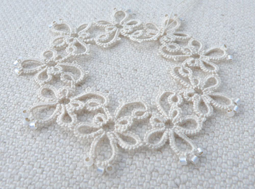 Also, I’ve been trying out using tatting for a brooch – and I’m not keen on that either!