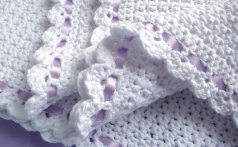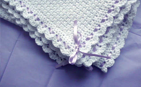 Saturday morning arrives, the day of the hand over. She gets up early and wanders downstairs, eyeing the weather. Its neither good nor bad — it’s not really decided yet, and standing in her pj’s she couldn’t really blame it. She takes a bunch of Baby Blanket photos in the less than perfect light and hopes for the best. She wraps the parcel, congratulating herself on the previous purchase of some pale purple tissue, matching ribbon and brown paper.