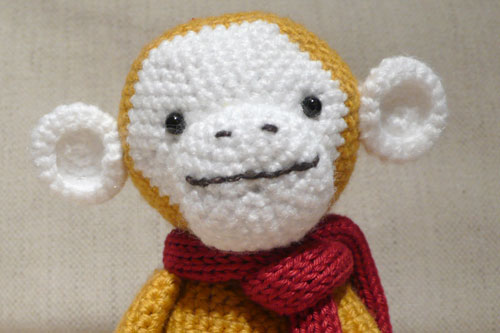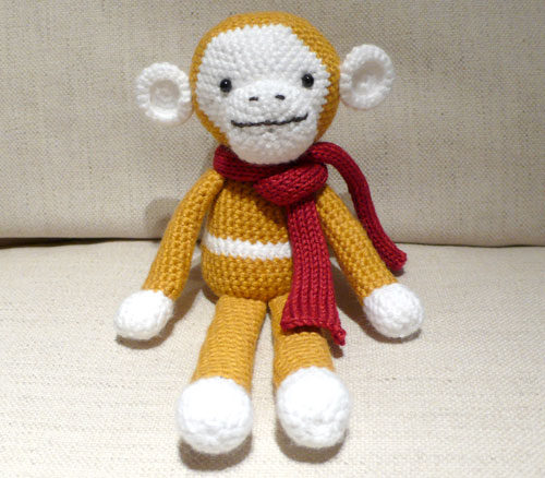 One has a scarf, the other has a scarf-in-progess. The scarf in progress is a simple 2×2 rib. I do love the fact that I can knit them scarves now (Thank you, Mum!) It always felt like a bit of a cruel blow that you spend so much time making them and then you’re still not done – you have to crochet them a scarf as well. (Monkeys always need a little accessory. It’s a very unloved monkey that gets sent into the world without one).
