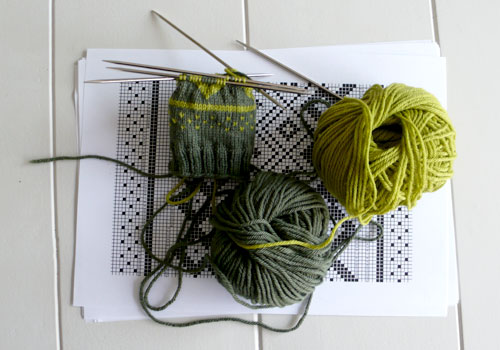 Then I’d have somewhere to put the odd things like this which end up stuffed in various boxes around the house. This was me trying to work out a smaller version of a vintage pattern, and then switching to something else entirely (above).
