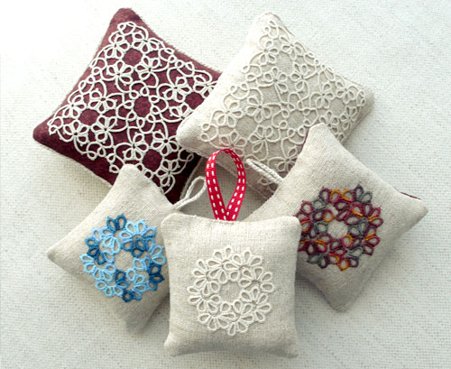 In the end I made six complete bags. I have another two that still need to be stitched on to fabric – and I got some new thread at the weekend, so there could be more to come. Not 100% sure what to do with them all right now, but… well… as I said, that corner of the house smells amazing.